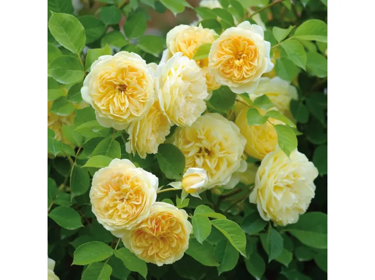 Нежные цвета этой восхитительной английской розы очень красивы. Цветки кремово белые по краям и золотисто-желтые в центре, с тонами меда, сливок и лимона. Они густомахровые, чашевидные, квартированные, иногда склоняются под собственным весом. Обычно появляются по одному, но иногда и в небольших кистях, и всегда невероятно элегантны. Куст раскидистый, нуждается в обрезке для поддержания красивой формы. В жарком климате популярный сорт для обелисков, достигает 2 м в высоту. Листва блестящая, шипов мало. Аромат очень сильный, сладкий, фруктовый. (ARE) Цветки красивого нежно-желтого цвета, не выгорают. Имеют форму идеальных слегка чашевидных розеток. Листва бледно-зеленая. Пахнет чайными розами, завоевала приз за аромат в 2000 г и множество других наград. (ER)