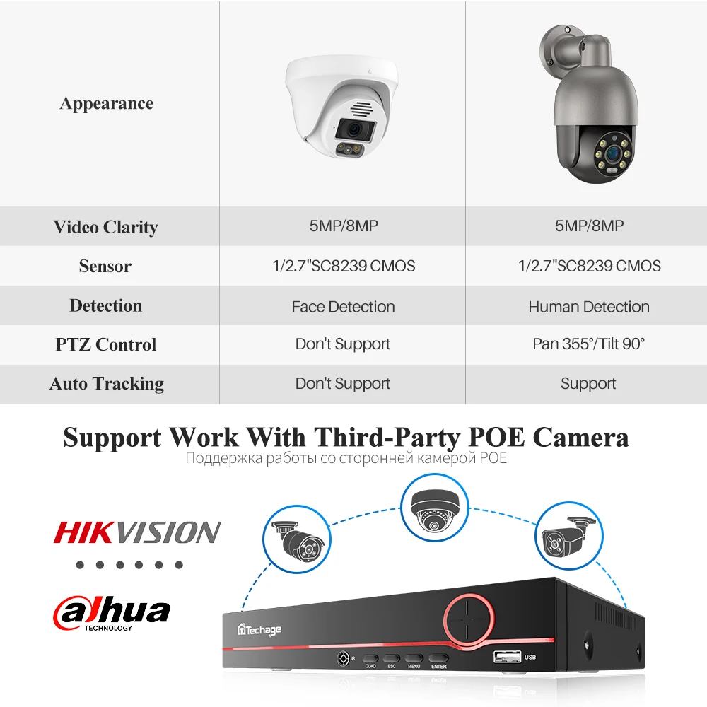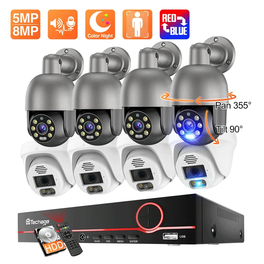 Techage 5MP 8MP Surveillance Set H.265 8CH Security Camera System Human Detection Night Vision PTZ CCTV Video Surveillance Kit - Купить с бесплатной доставкой