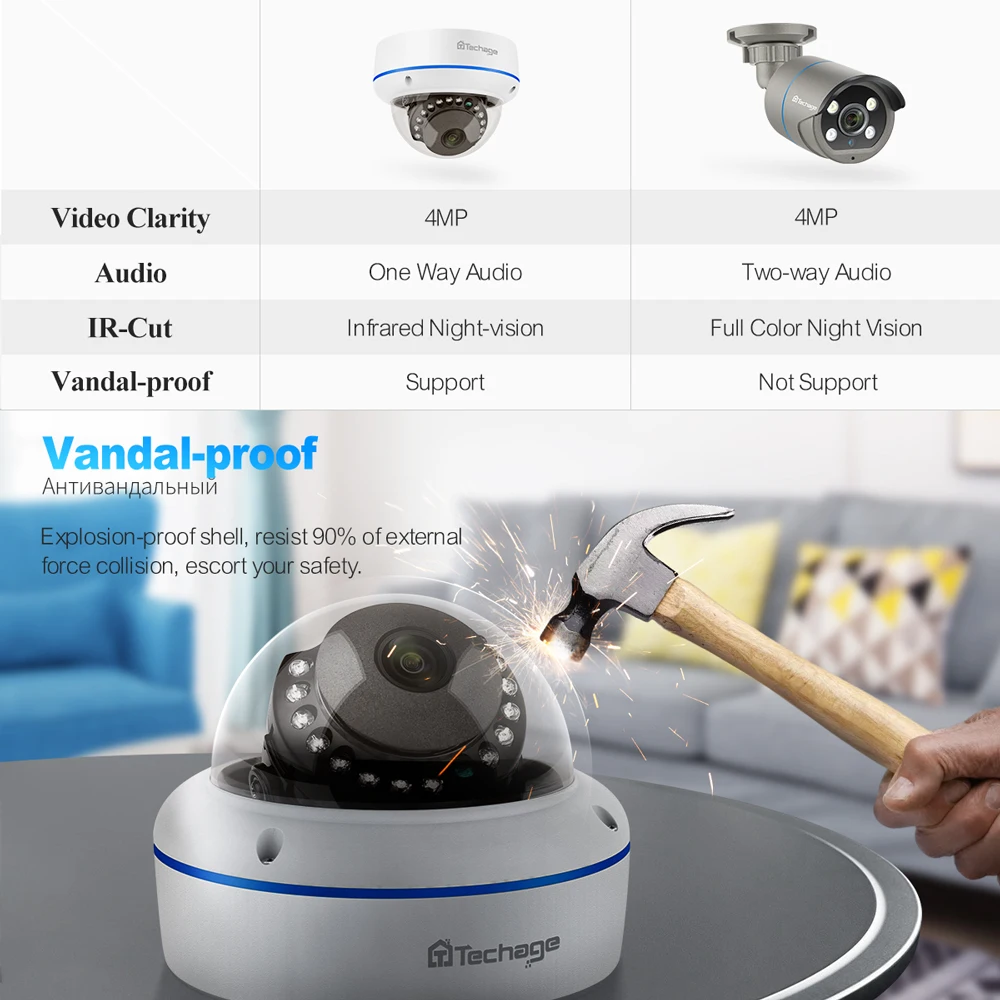 Techage 8CH 4MP POE Security Camera System H.265 POE NVR IP Camera Color Night Vision CCTV Video Surveillance Kit Human Detect - Купить с бесплатной доставкой