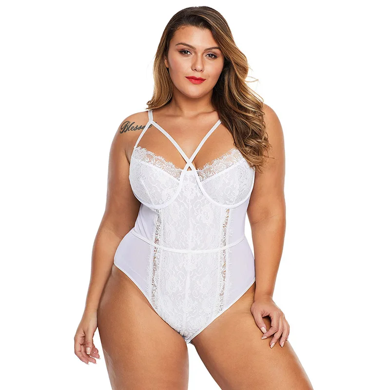 Wholesale Big Breast Cross Straps Women Teddies Bodysuit Lingerie Fat Girl Sexy Plus Size Lingerie