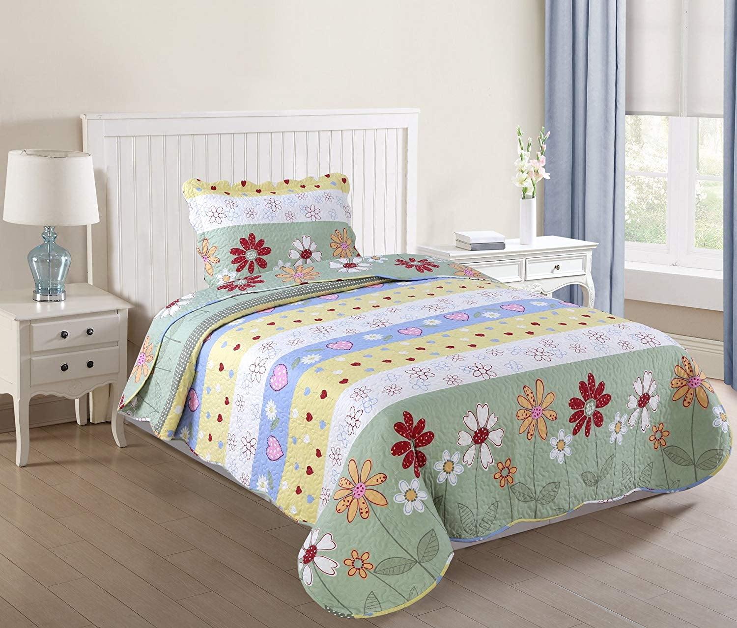 Create a cozy bedroom space with Shabby Elegance style of the Intelligent Design Cobblefield Tufted Diamond Ruffled Coverlet Set. The ultra-soft microfiber coverlet features a tufted diamond pattern with elegant ruffles, for a charming look. The 2 shams (1 in Twin/TwinXL) match the design of the coverlet to complete cottage-inspired aesthetic. Cotton-filled quilting provides a soft feel and exceptional comfort. This bedding set uses an antimicrobial treatment that provides built-in freshness protection, reducing the growth of odor causing bacteria to keep fabric lasting longer.