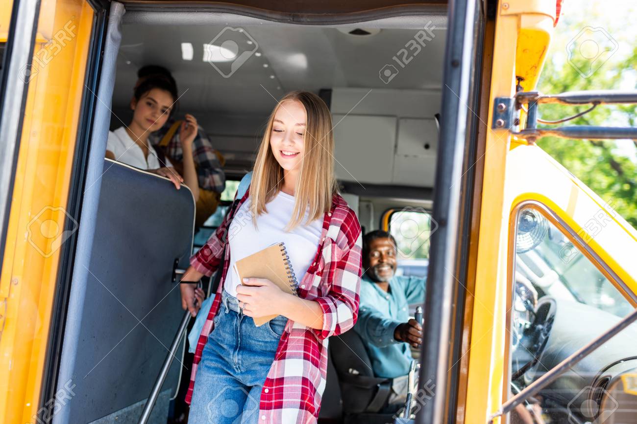 Teen Girls On School Bus