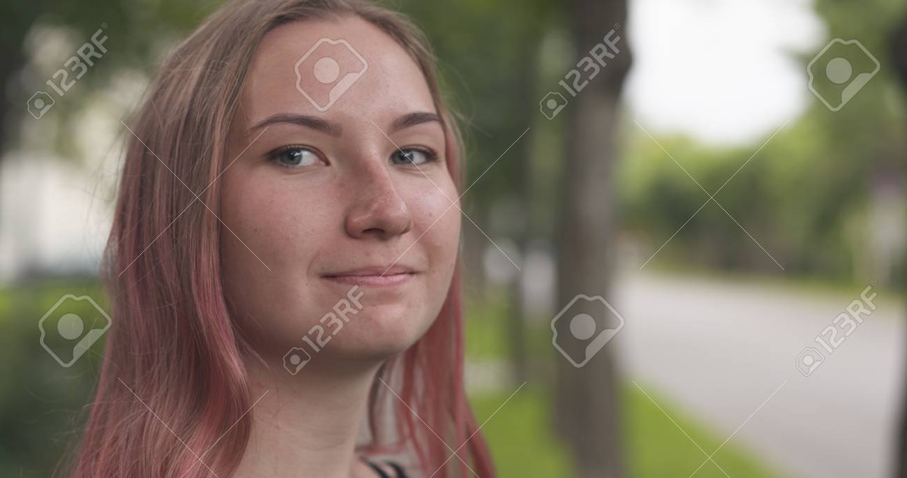 Teen con i capelli viola in webcam