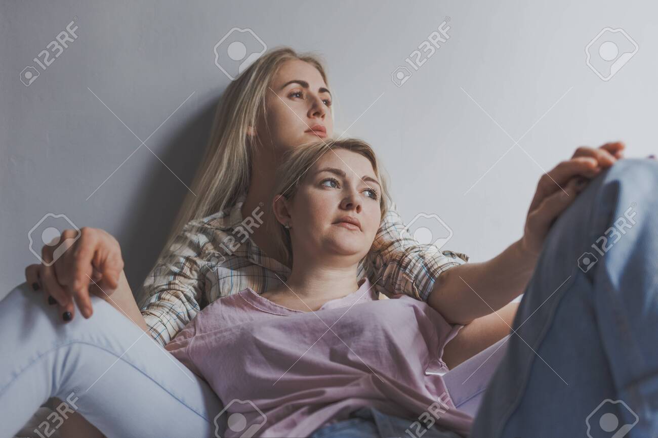 Portrait of two young girls women lesbians who gently kiss each other in the hand pretty, lie in bed . LGBT . Portrait of two young girls women lesbians who gently HD Two friends lesbians hold hands and walk slowly along a green grassy lawn, the love of young women, a trip of an . Attractive couple in Georgia against the