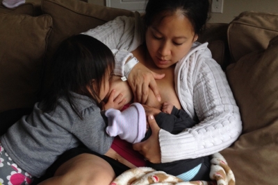 Die Brüste von Annika Bond werden abgebunden