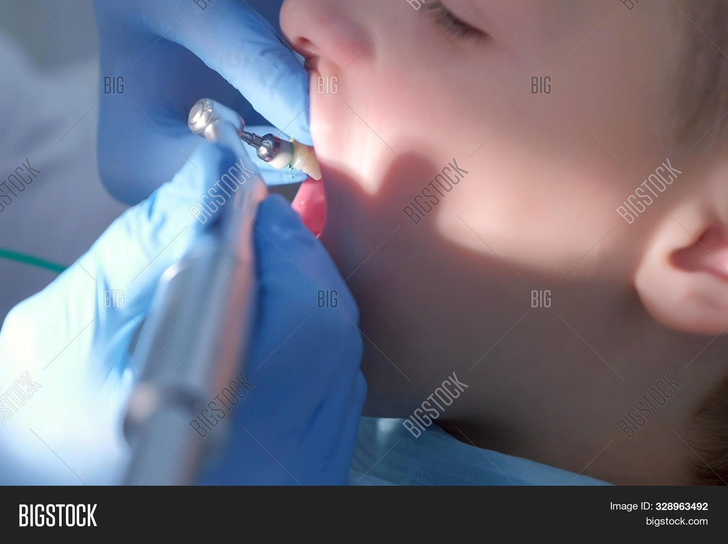 Teen uses electric toothbrush