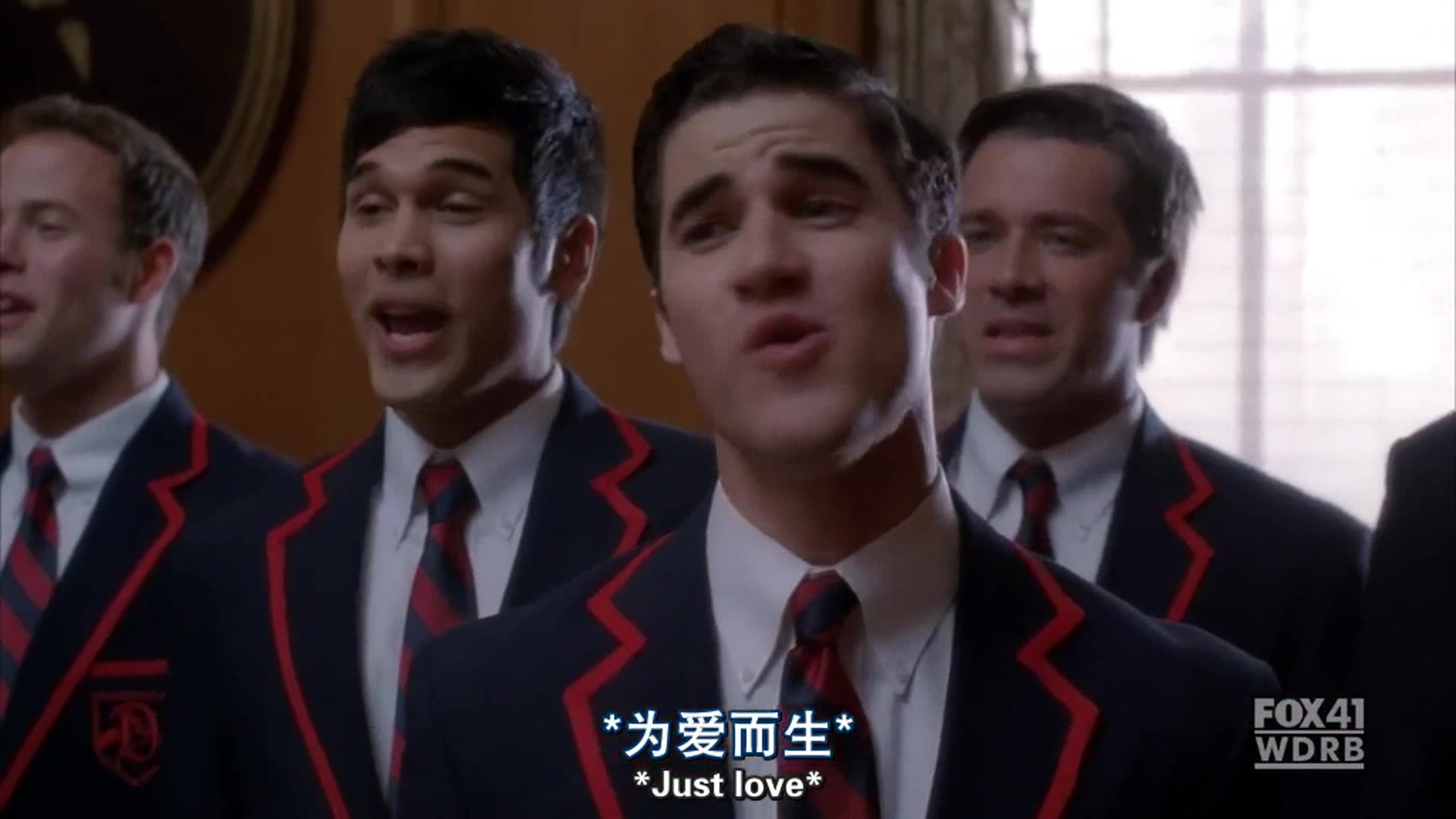 Blaine with The Warblers harmonizing:
