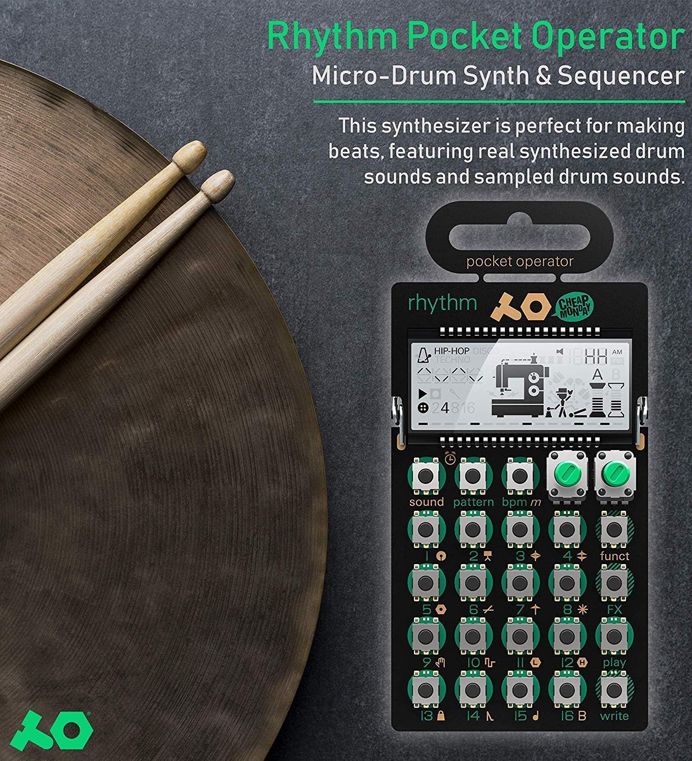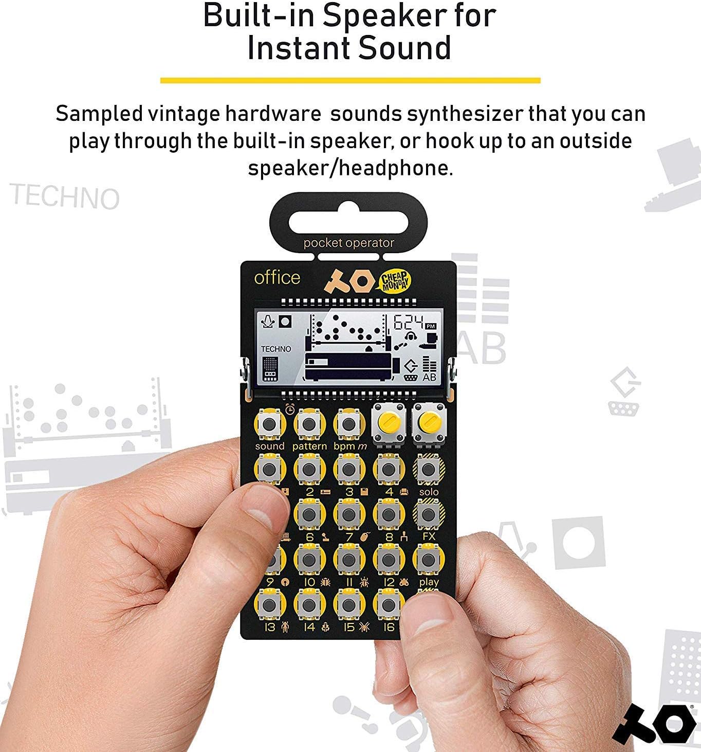 arcade synthesizer and sequencer, with parameter locks, chord control and punch-in effects. pocket operators are small, ultra portable music devices, with studio quality