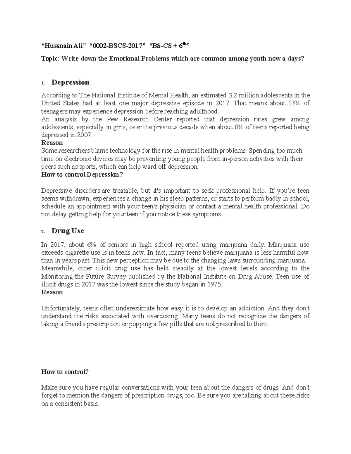 Teenage Problems Topic