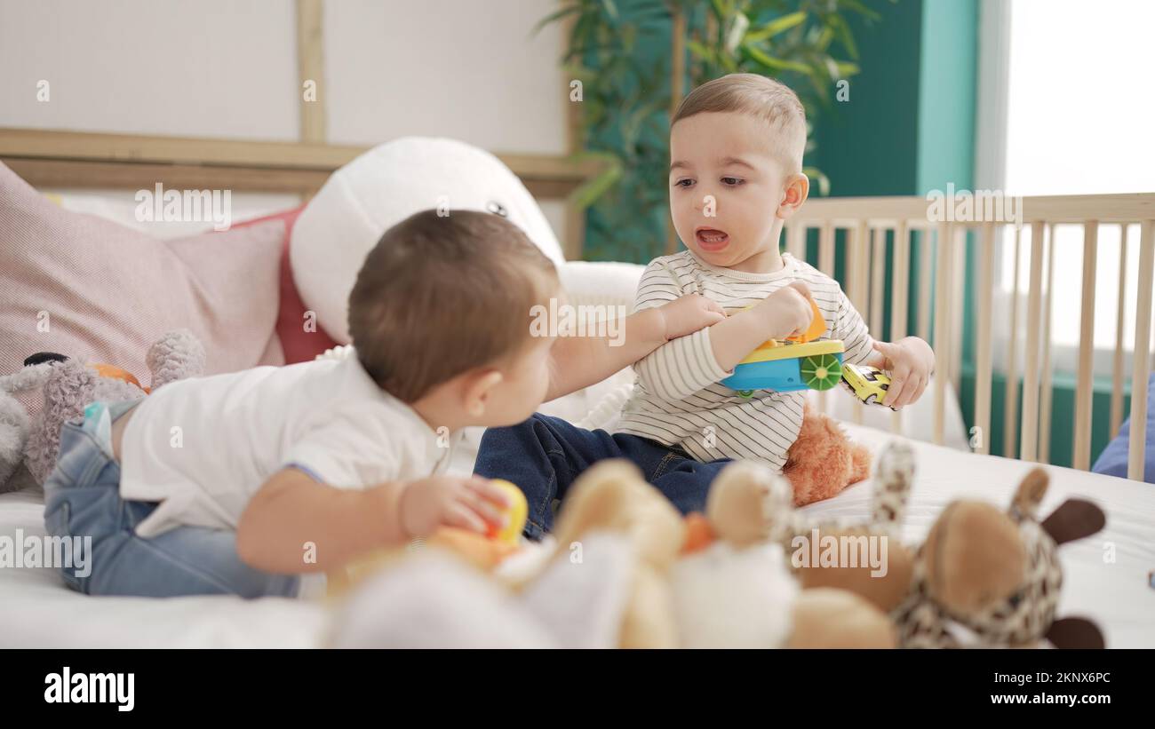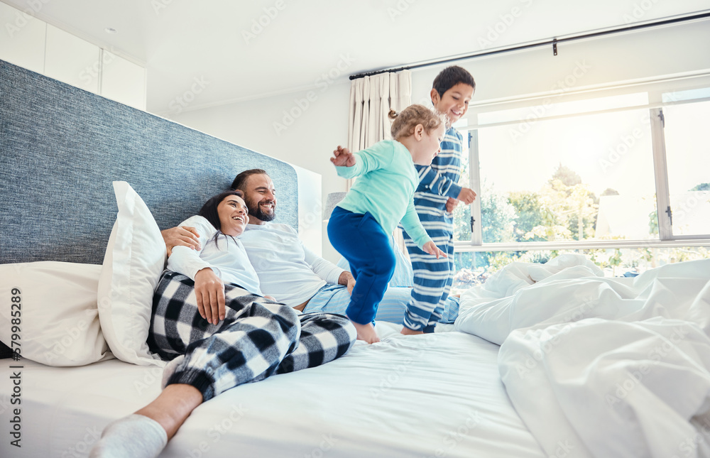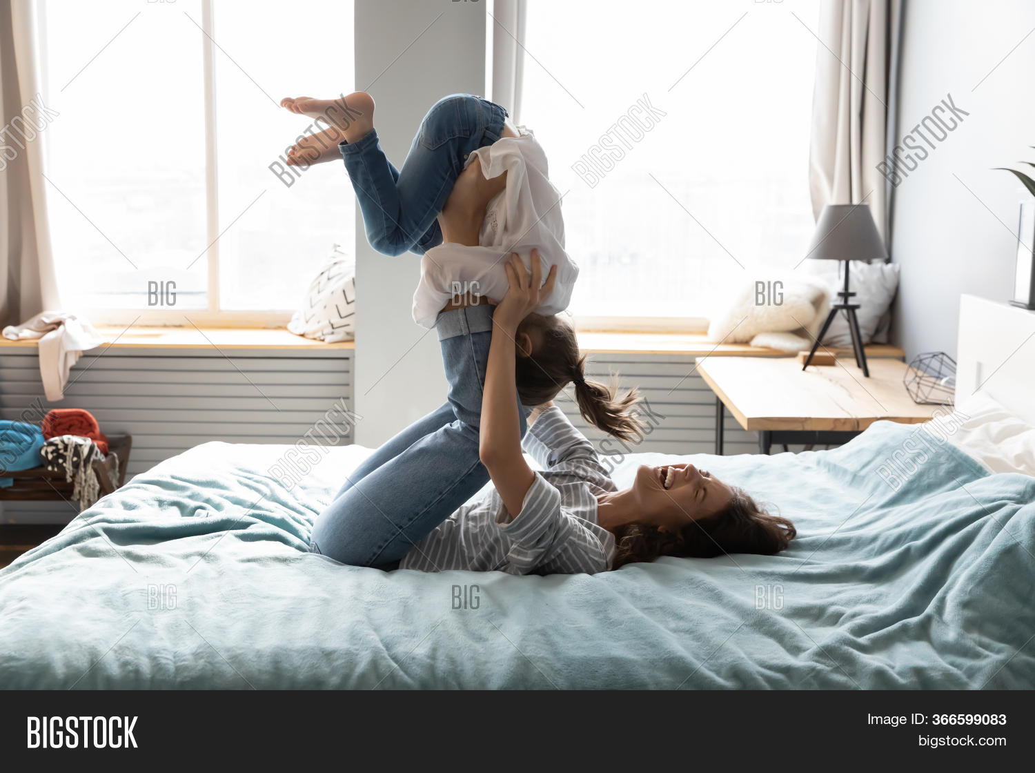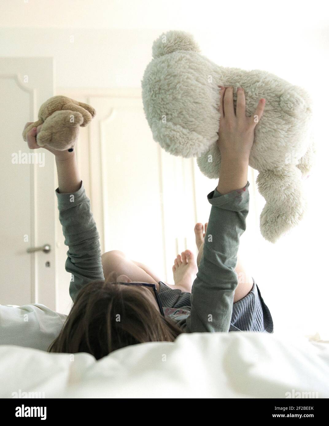 Teens playing in bed