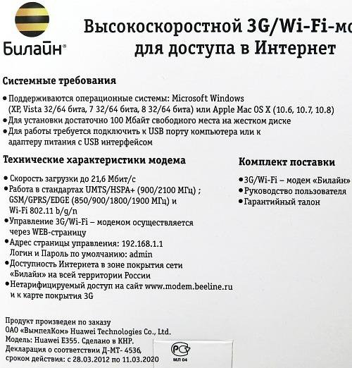 Техническая характеристика модема