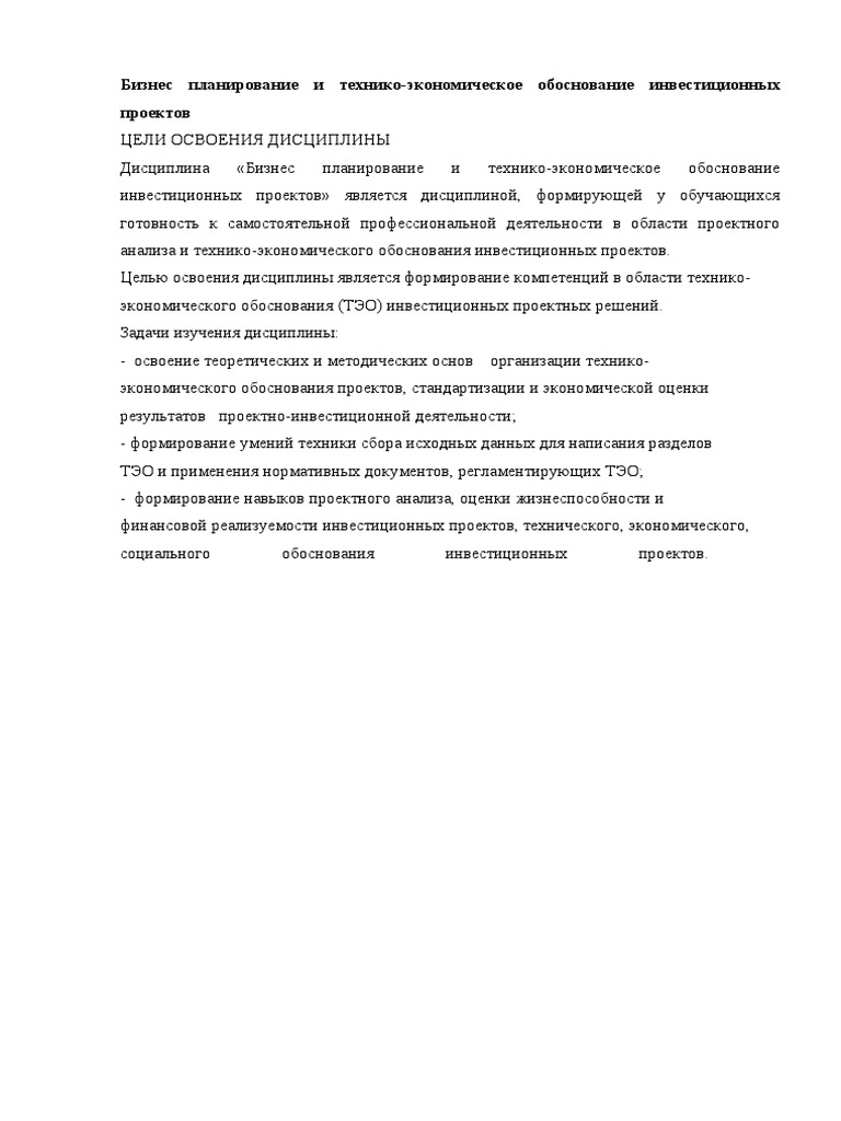 Тэо проекта образец . Технико-экономическое обоснование . . .