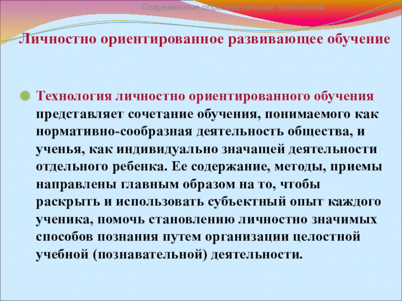 Технологии личностно развивающего образования