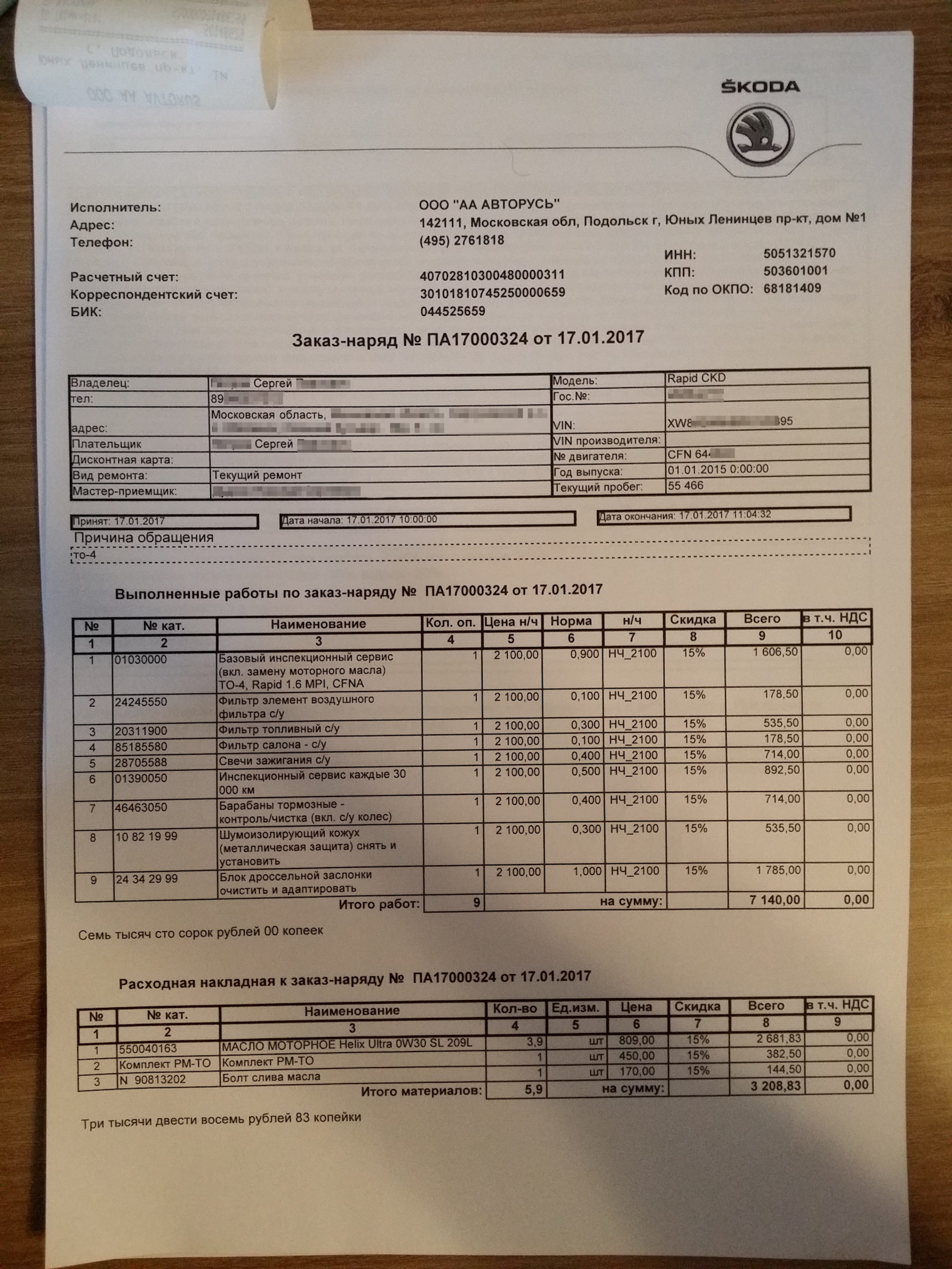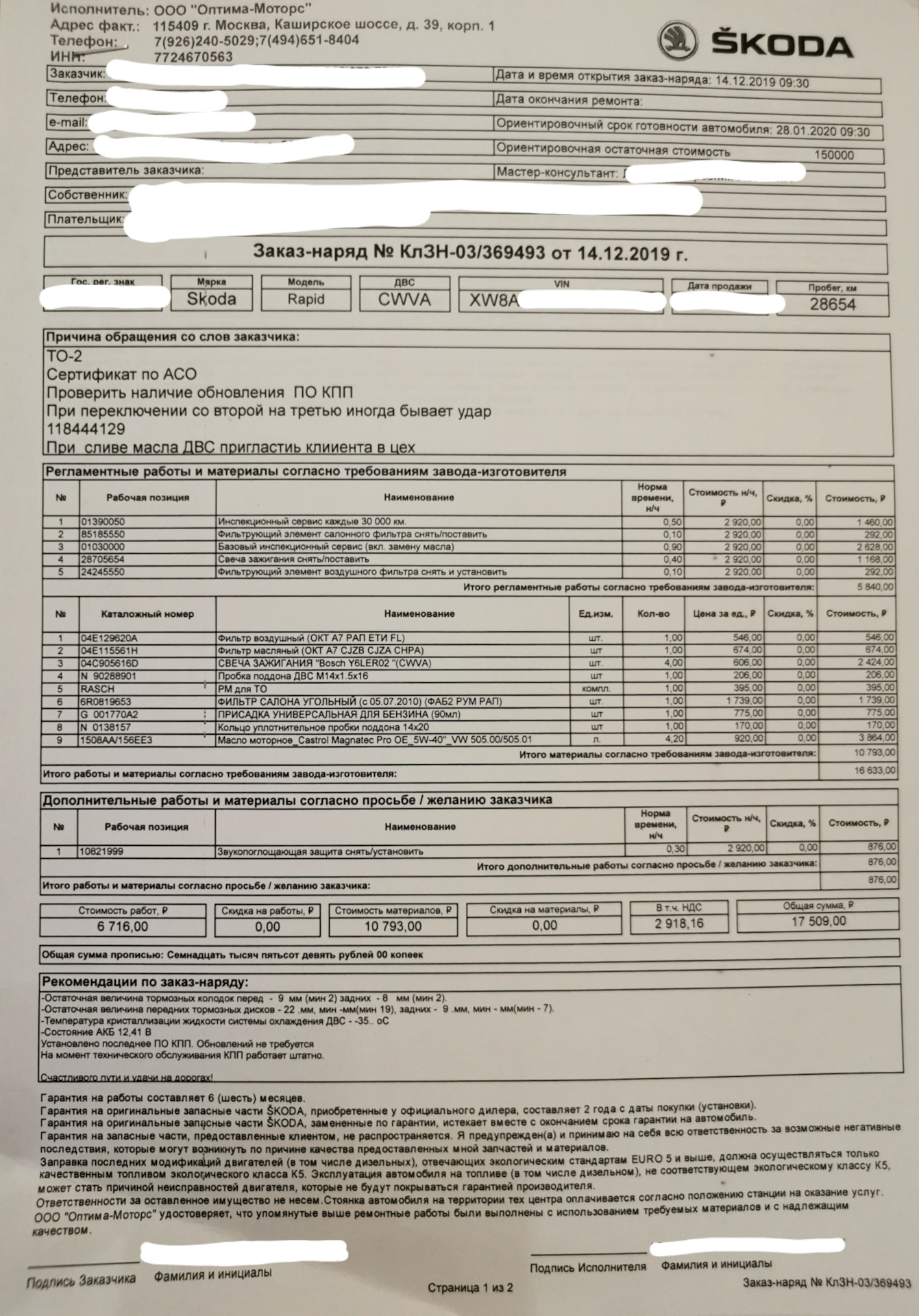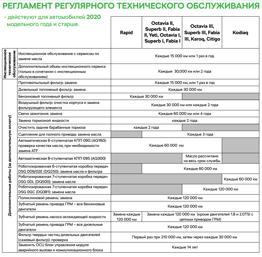 Техобслуживания шкода рапид
