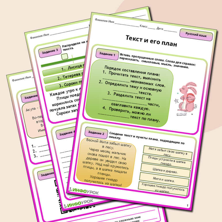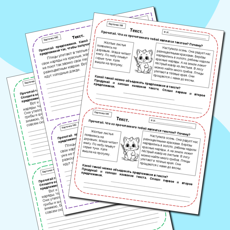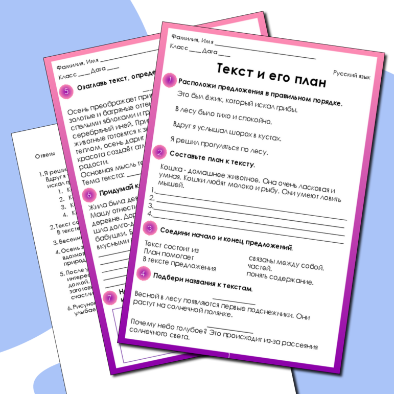 Текст и его план карточки