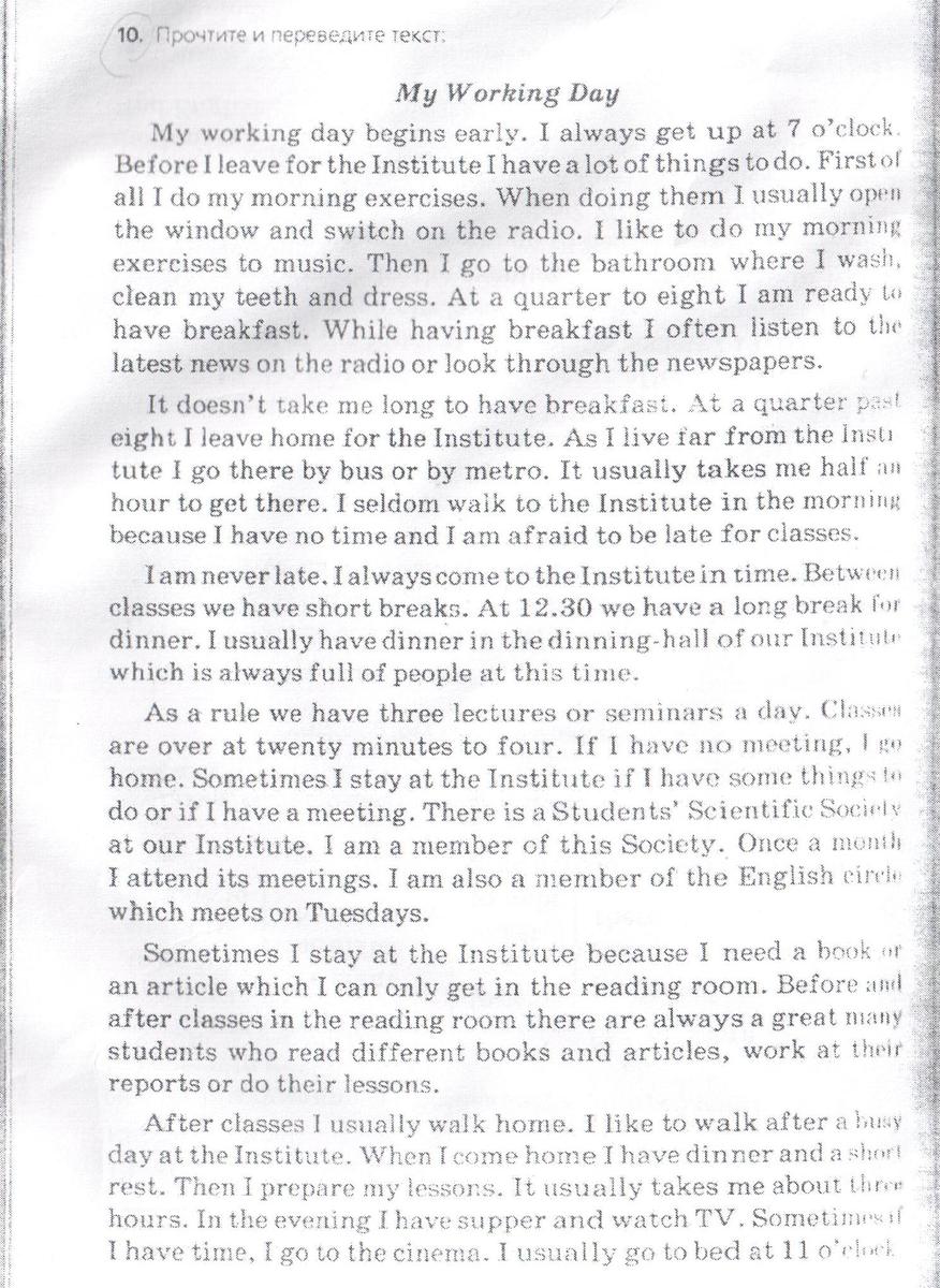 Текст my working day перевод