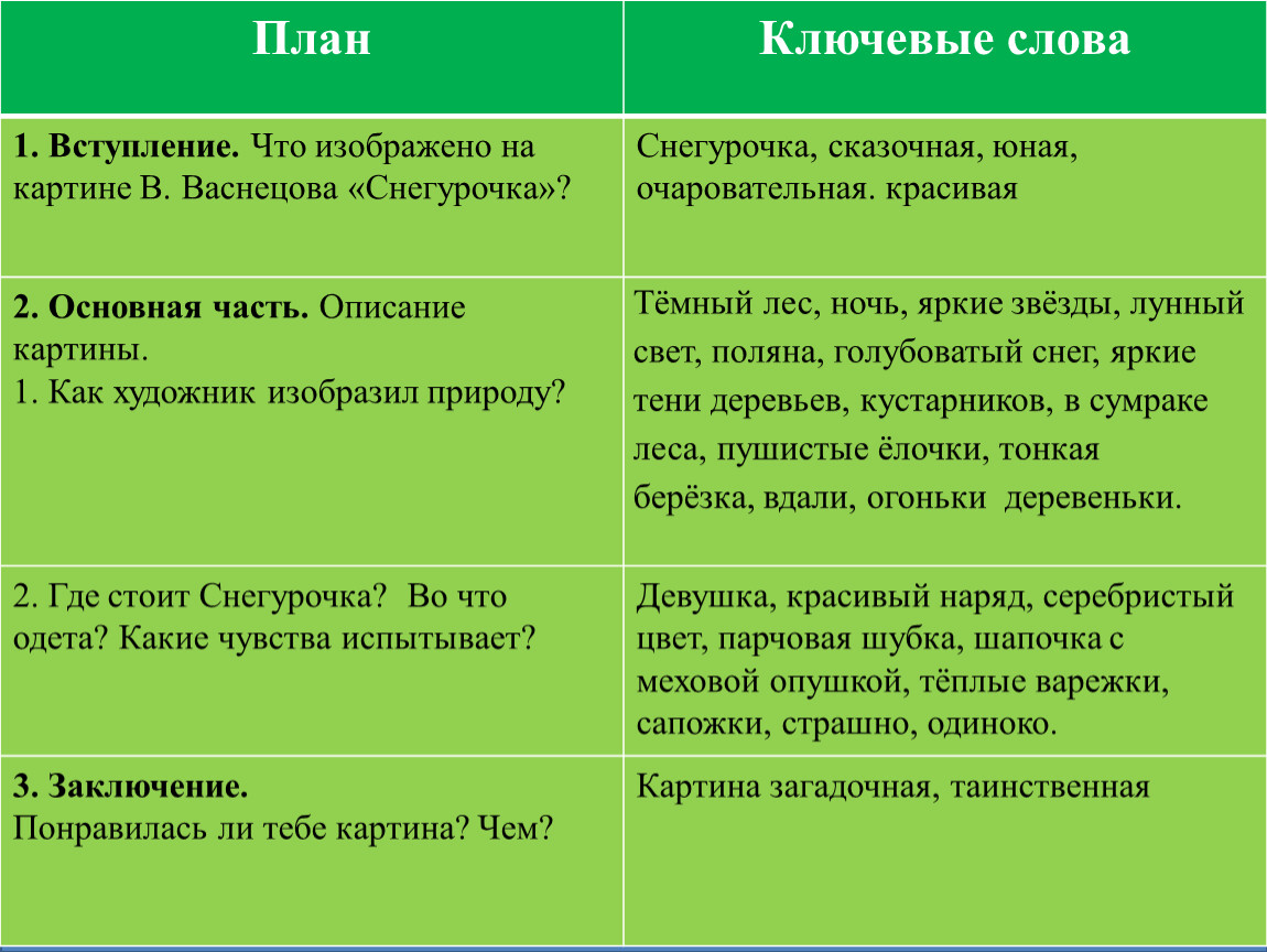 Текст описание картины план