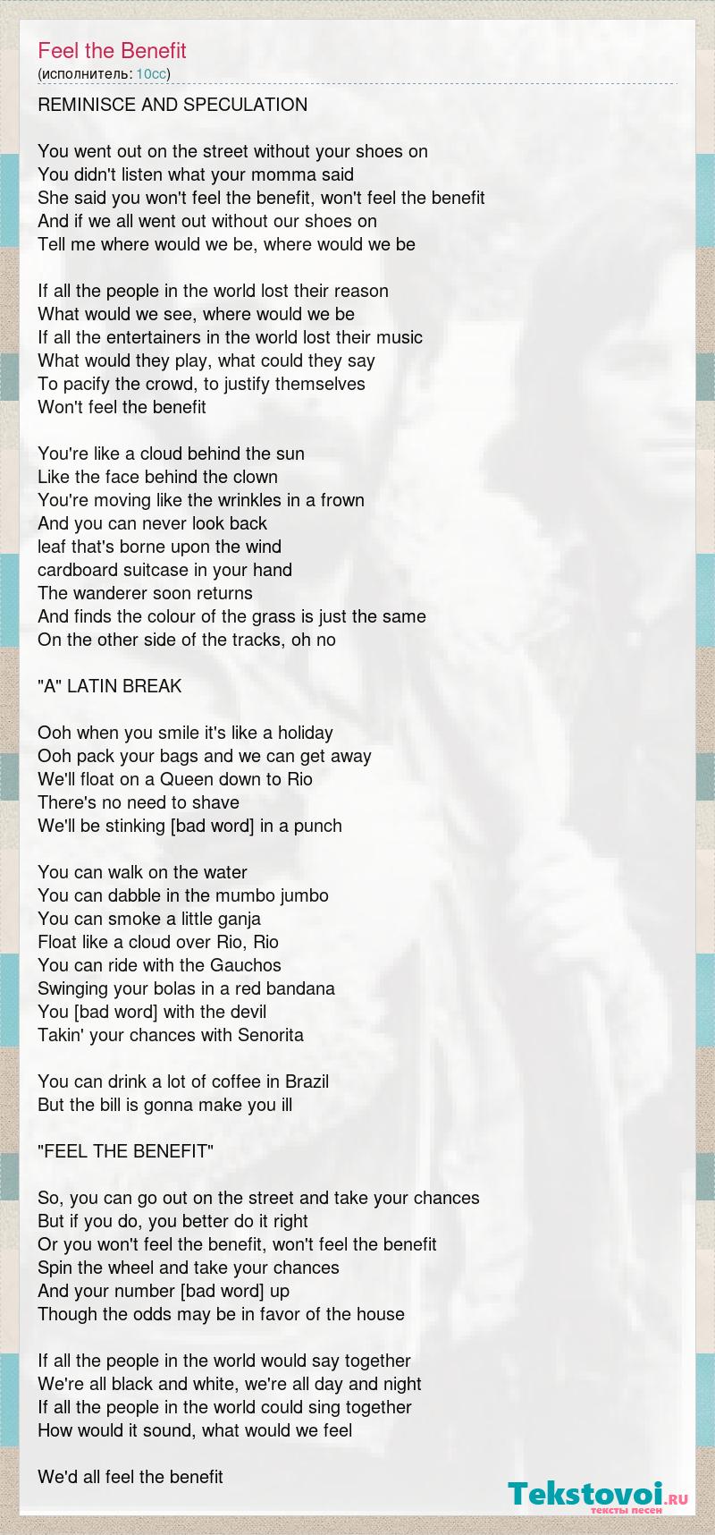 Текст песни the feeling