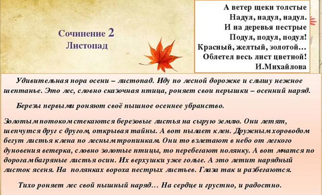 Текст про осень 4 класс русский язык