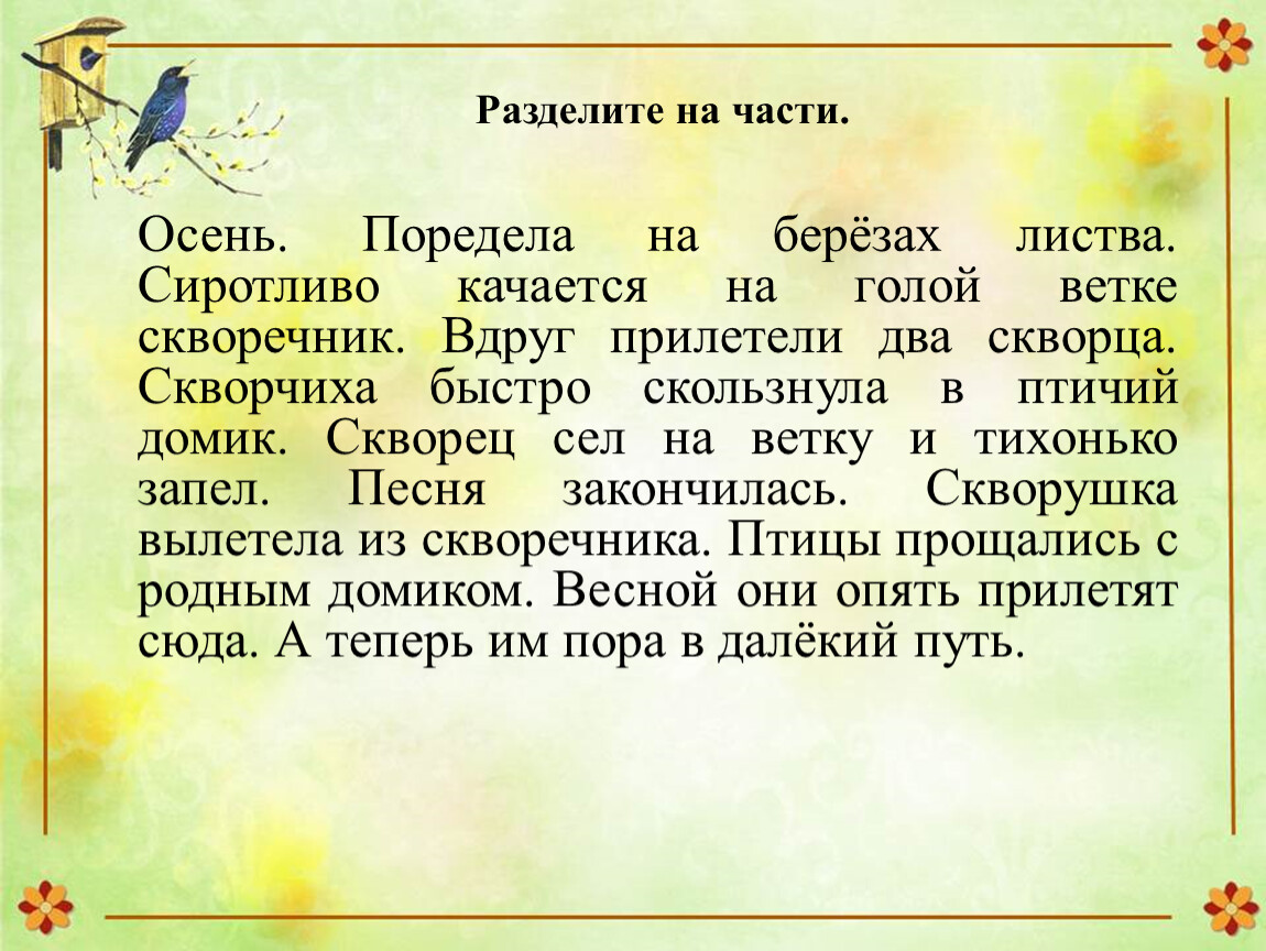 Текст скворцы 3 класс