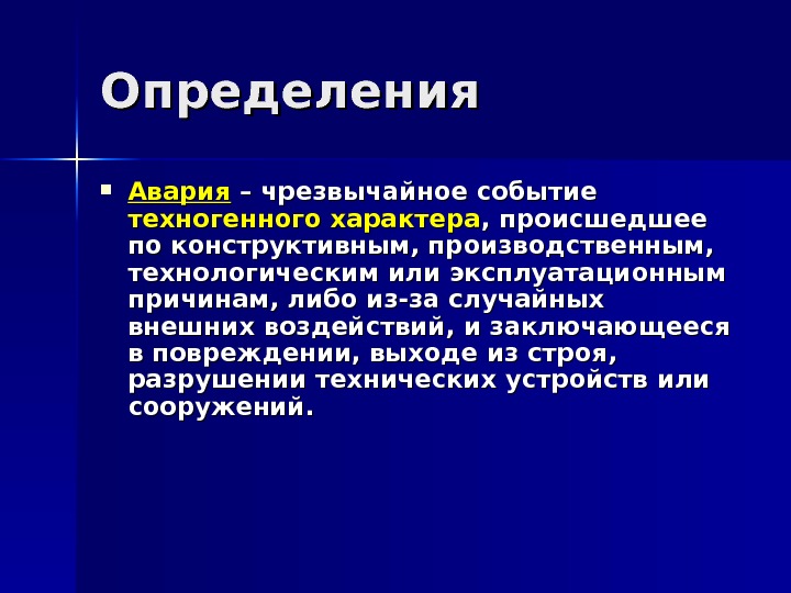 Текст вопроса аварии