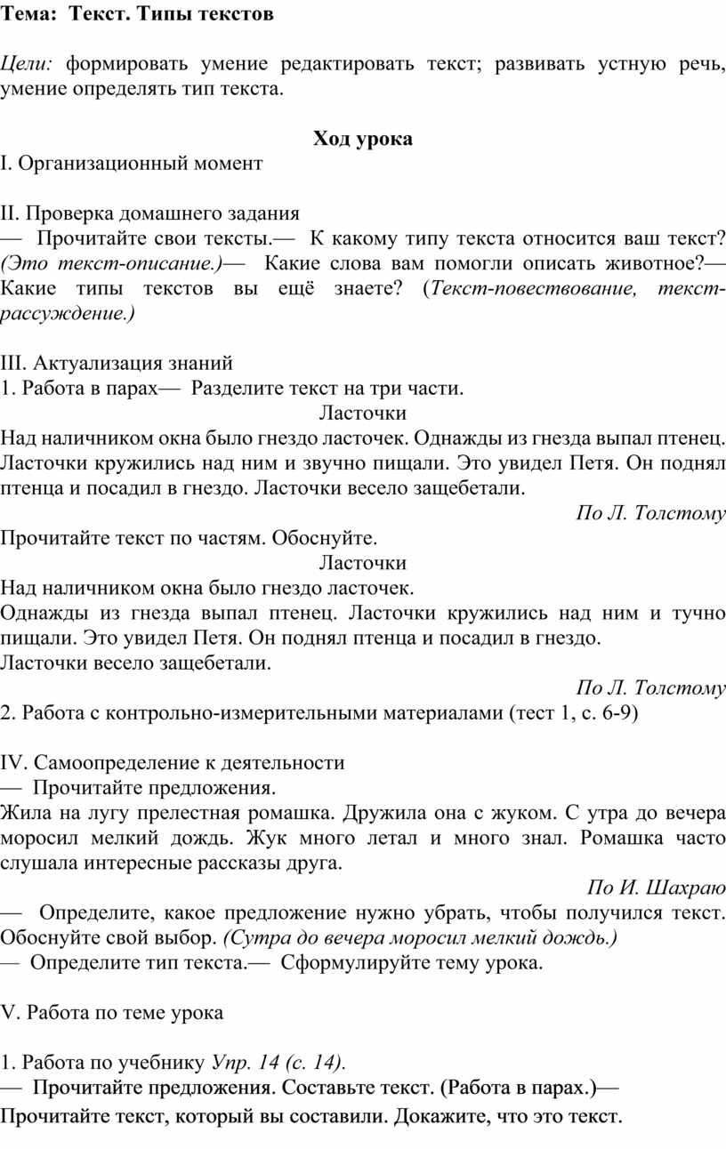 Тексты для определения типа текста 3 класс