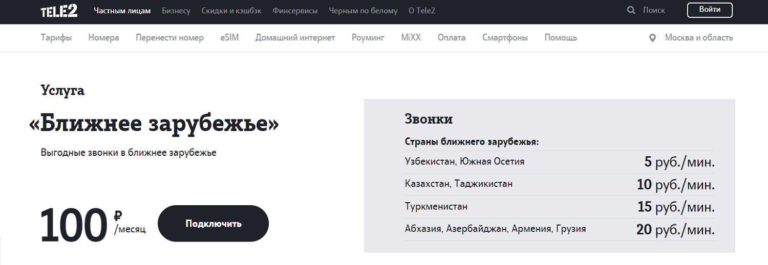 Теле2 международные звонки
