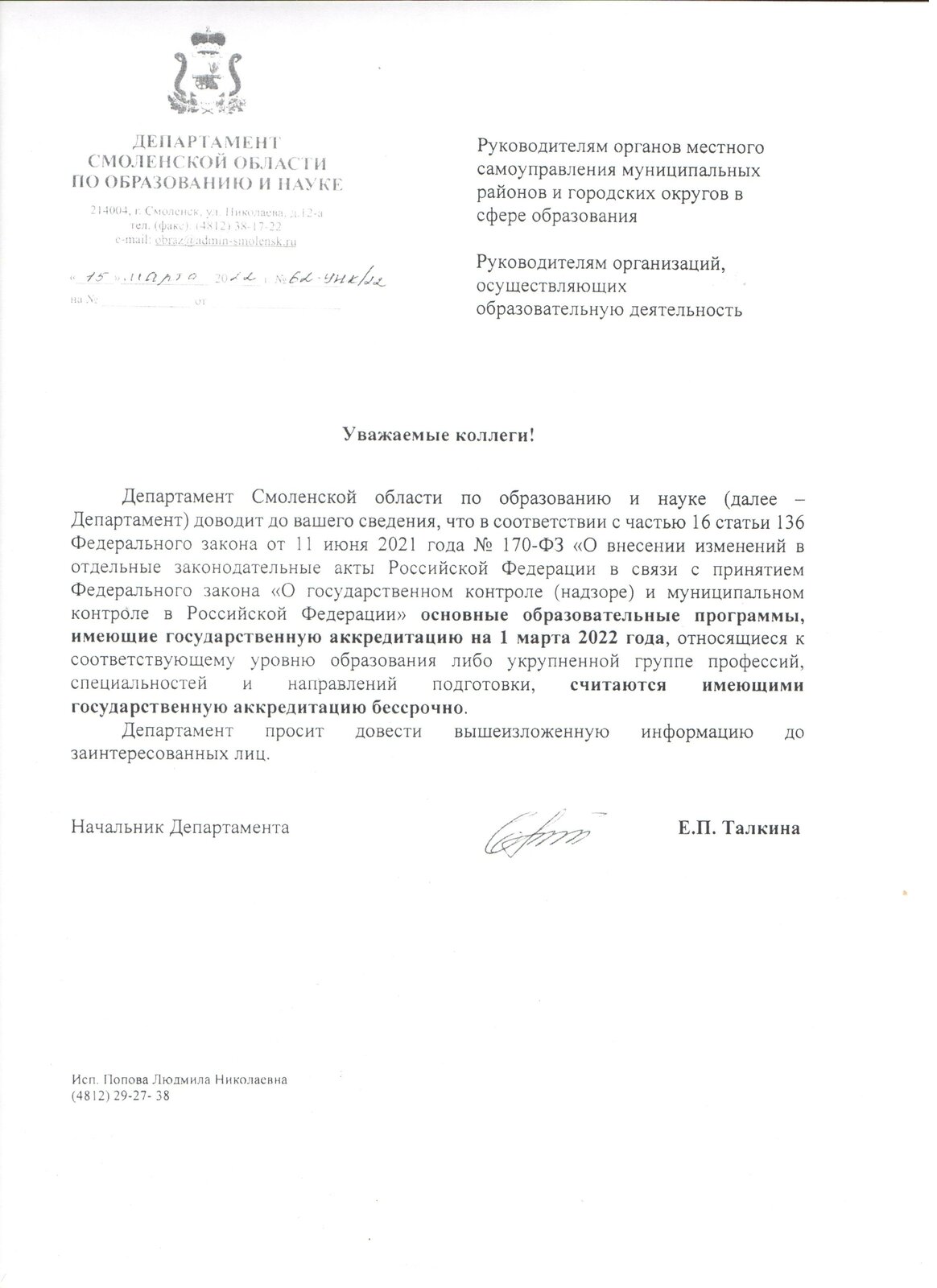 Телефон образования смоленск 109 фото