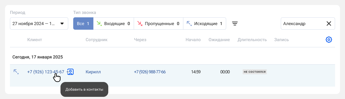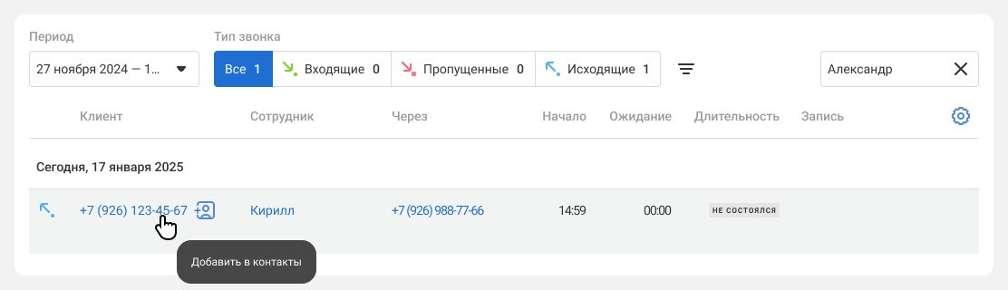 Телефонный номер контакта