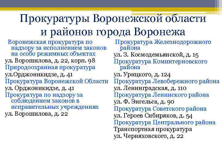 Телефоны воронежской прокуратуры