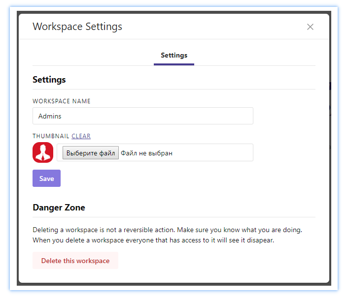 Рабочему пространству можно дать имя и присвоить картинку.
