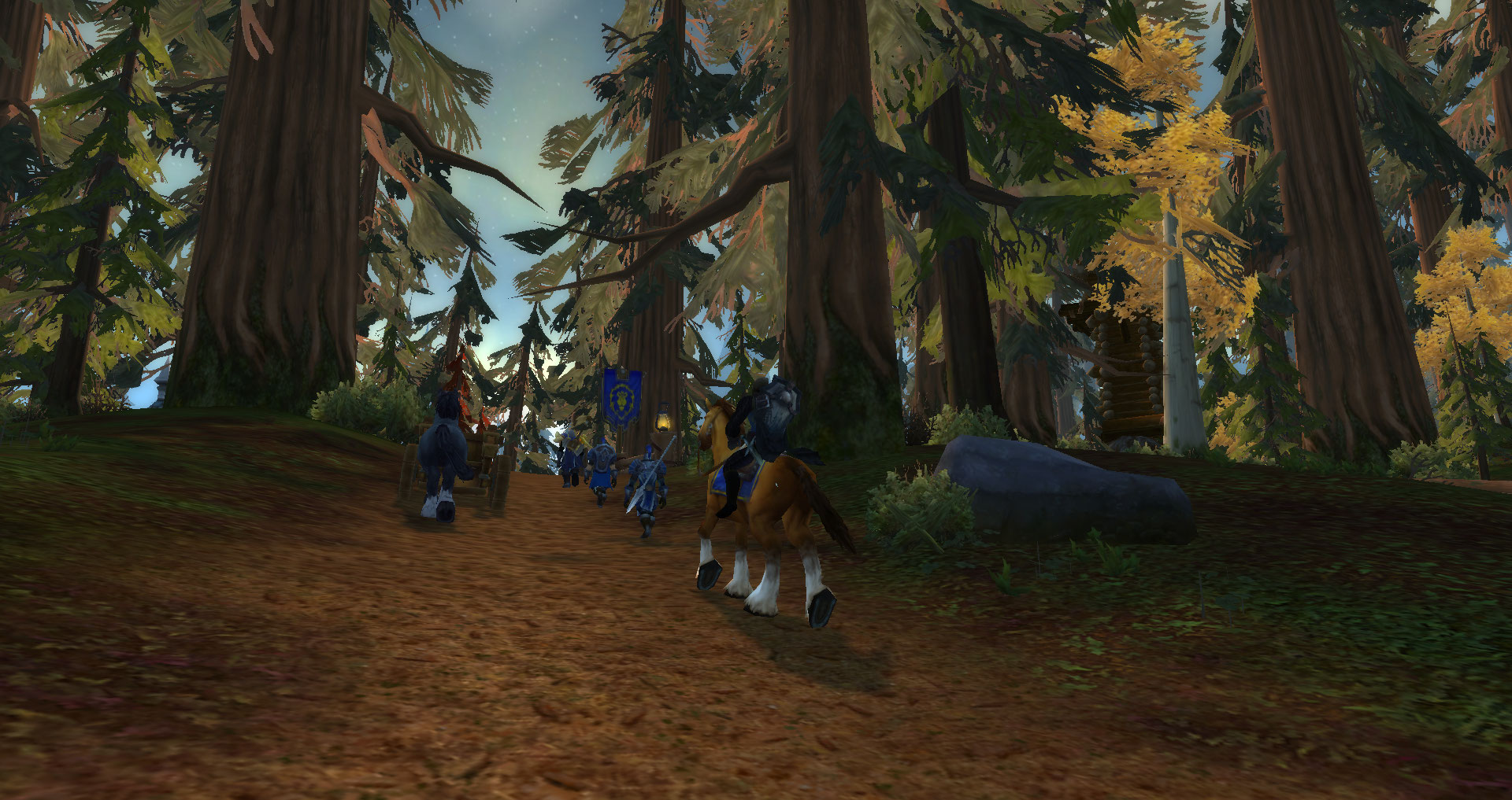 Место нападения на караван юго-восточнее поселения Драконий мост — телега, стоящая на дороге, вокруг которой лежат тела убитых норда и редгарда и туша лошади .