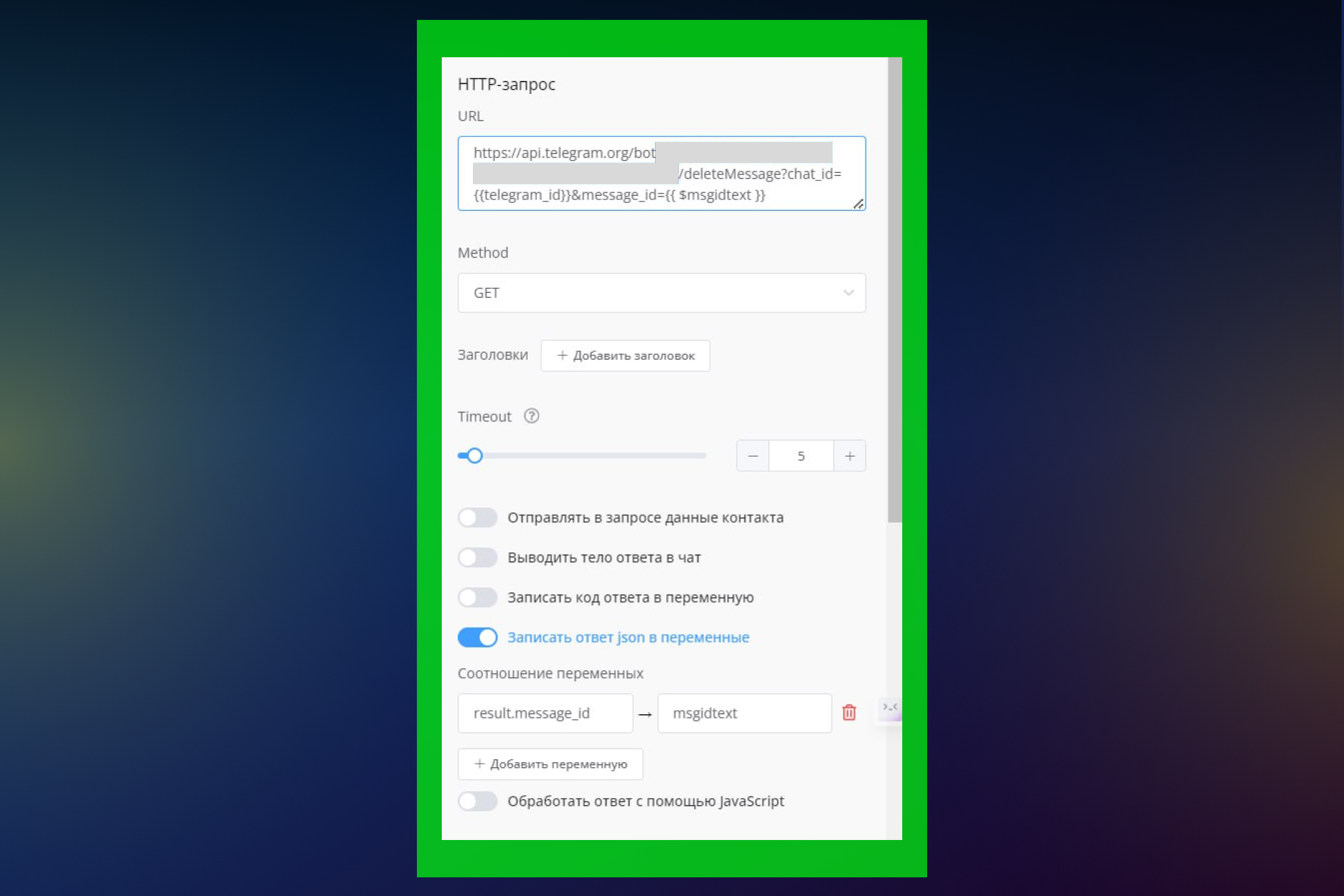 1. Для работы с запросами к API TG вам понадобится блок HTTP-запрос на платформе Leadtex.