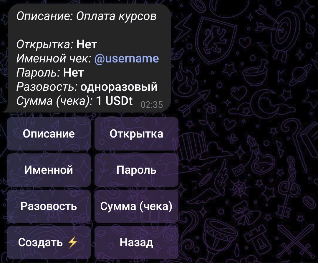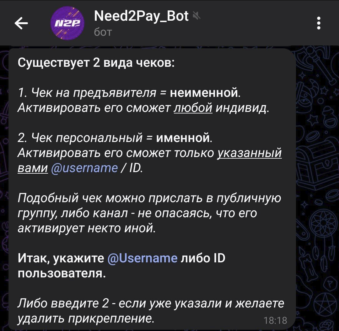Функционал чеков реализован для удобной передачи средств между пользователями внутри телеграмма.