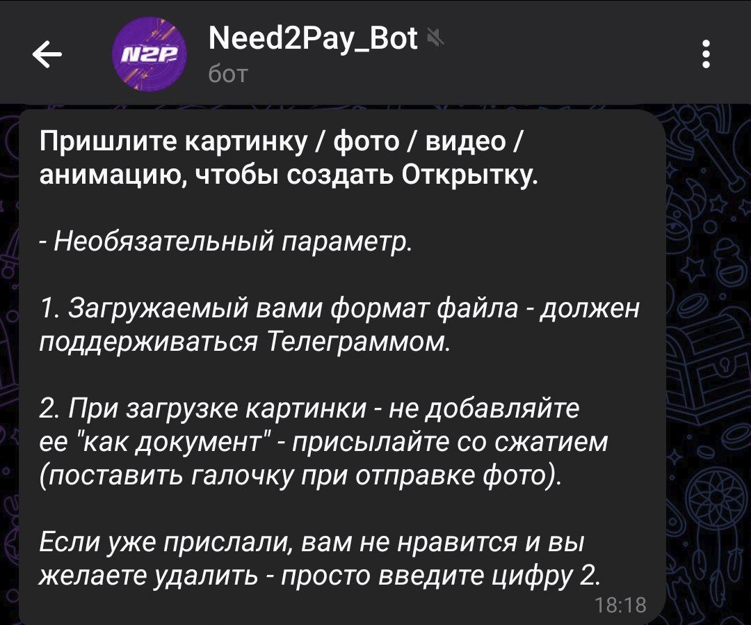 1. Напишите в любом чате @Need2Pay_Bot