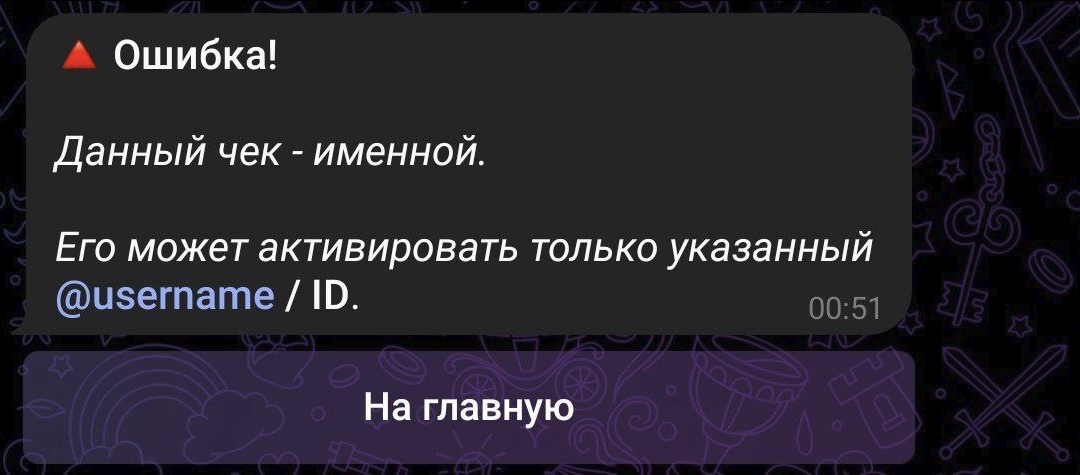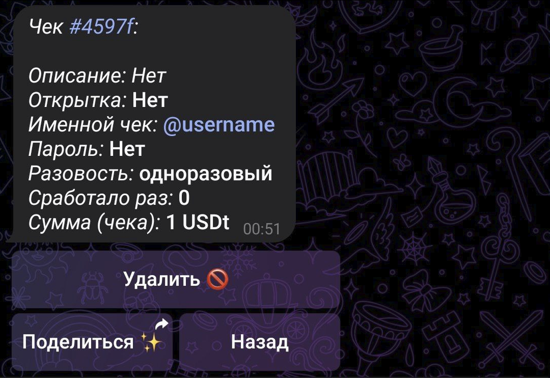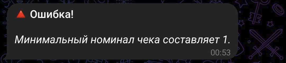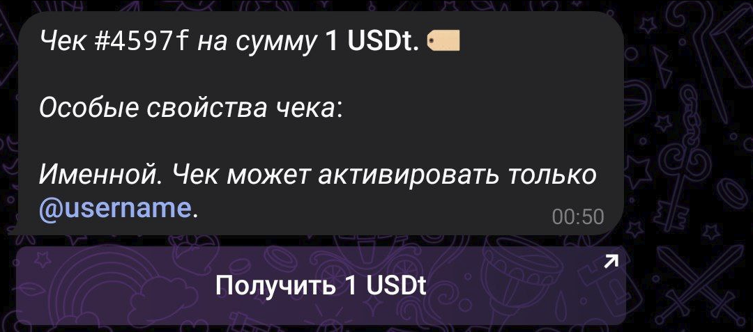 3. Если желаете создать именной чек - то добавьте @Username.