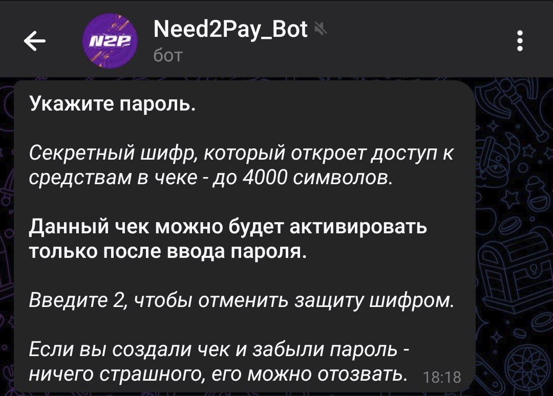 Имейте в виду, что на данный момент бот @Need2Pay поддерживает только USDT в сети BEP-20.