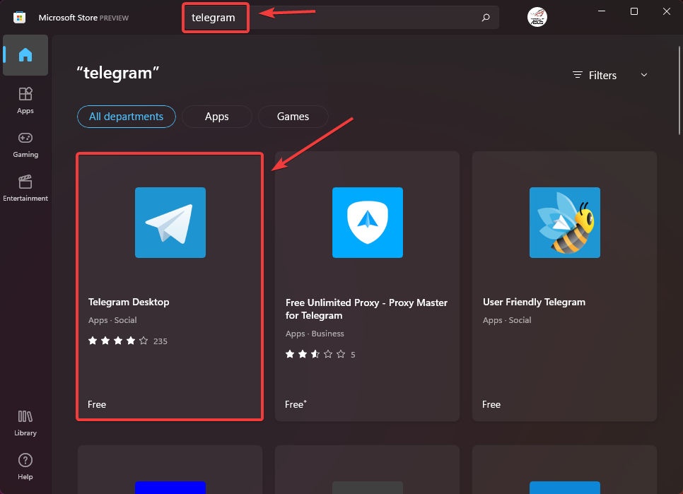 Телеграмм окно