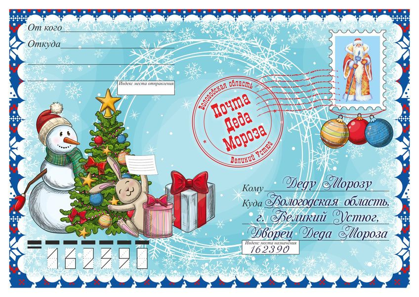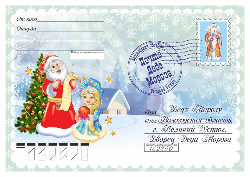 Адрес почты Деда Мороза . Россия: Официальный почтовый адрес Деда Мороза в Великом Устюге: 162340, Россия, Вологодская область, город Великий Устюг, дом Деда Мороза