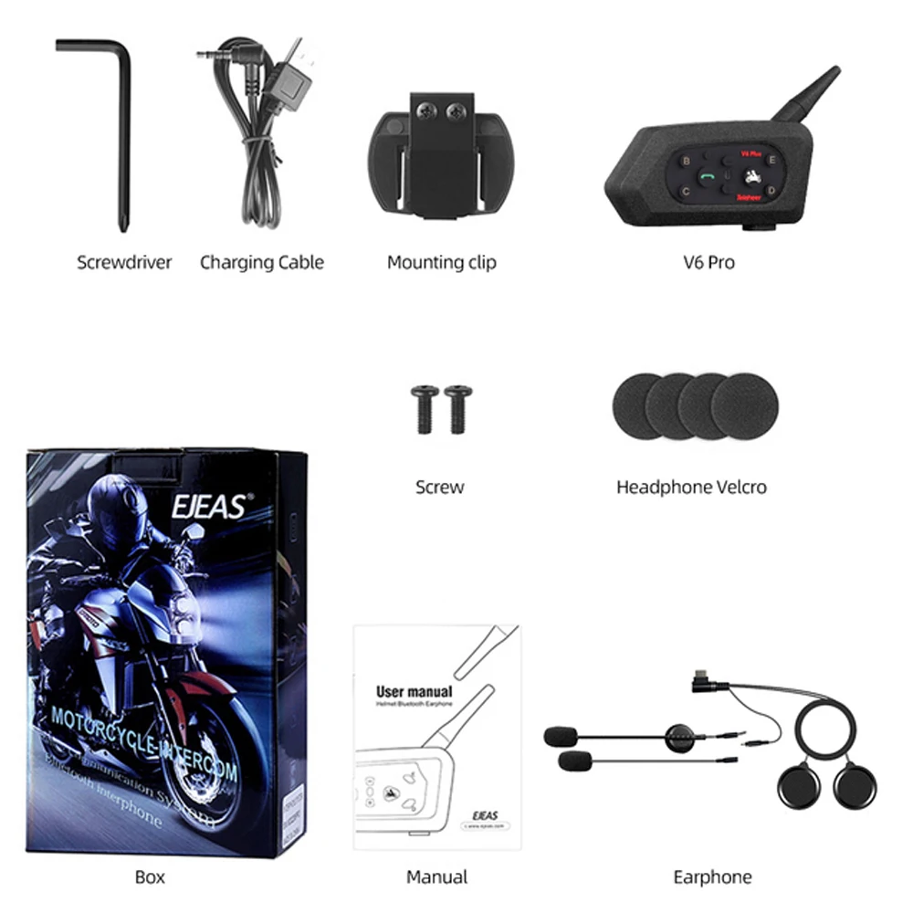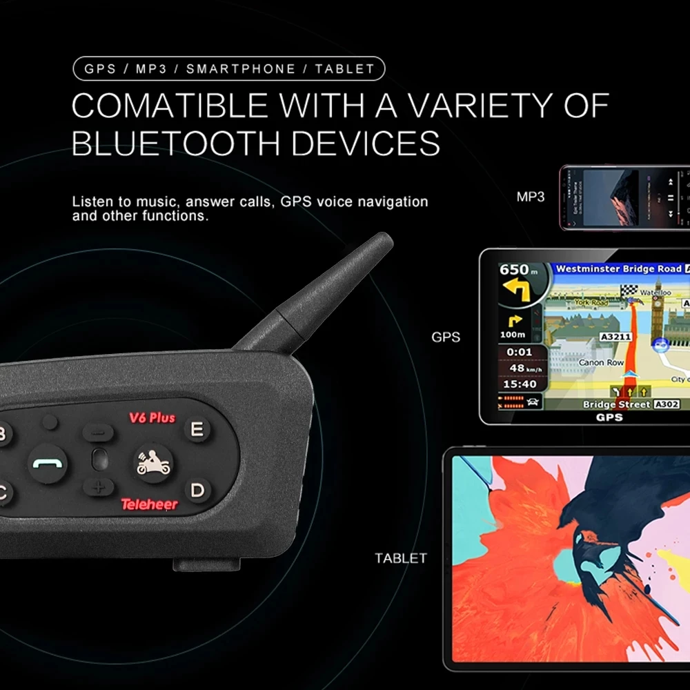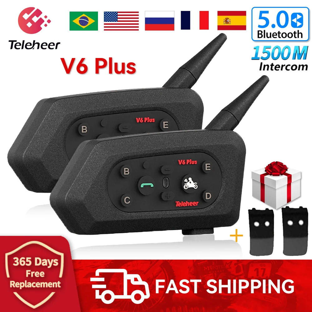 gglHUINdHere you can buy Teleheer V6 Plus Motorcycle Helmet Intercom for 6 Riders Bluetooth Headset Waterproof with Full Duplex Interphone Communicator with free delivery to your post office.
