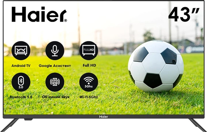Full HD Телевизор Haier 43 Smart TV MX 43 " Диагональ экрана, дюймы: 43 Разрешение: 1920x1080 Full HD Smart TV : Да Тип подсветки: Direct LED Беспроводные интерфейсы: Bluetooth, Wi-Fi