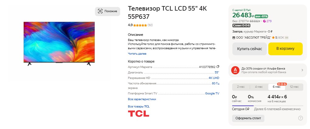 Телевизор tcl 65p637 черный