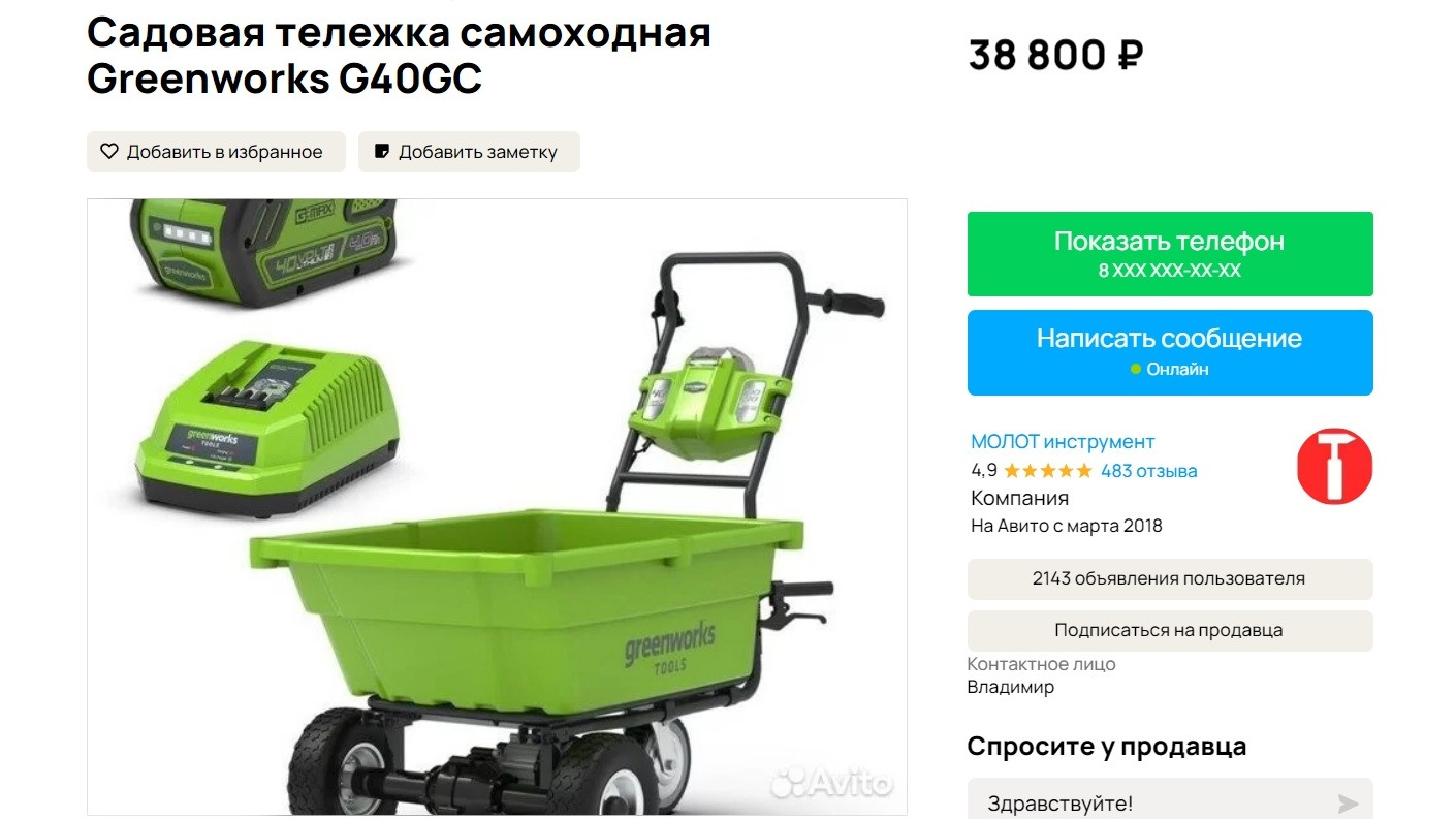 Тележка greenworks g40gc 108 фото