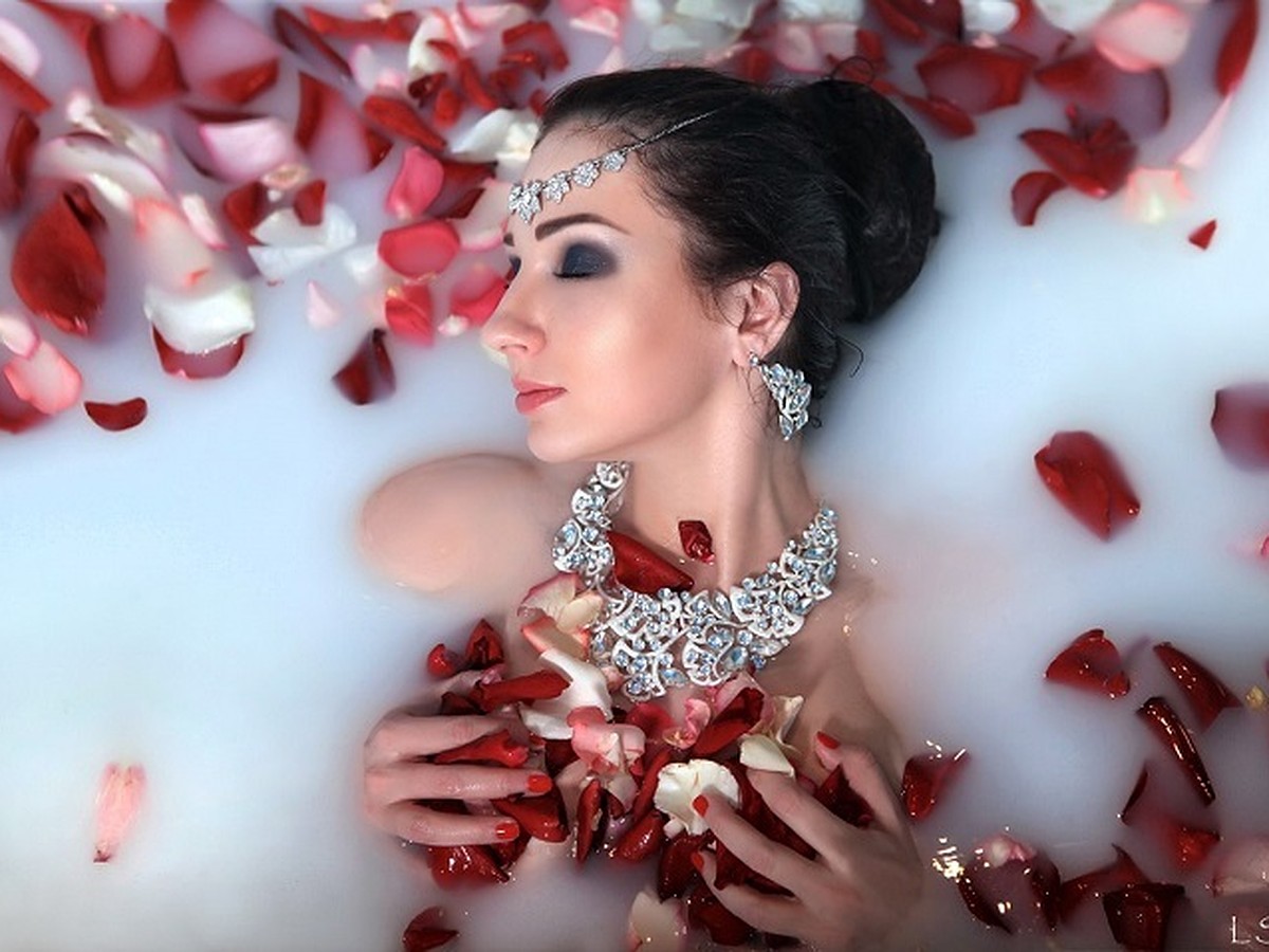 Порно телка купается в молоке от Brazzers