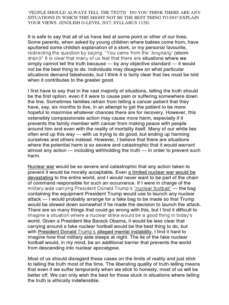 Telling The Truth Essay