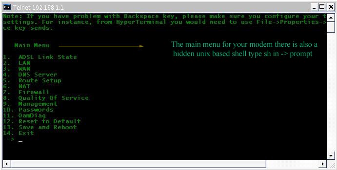 Telnet 192.168 1.1