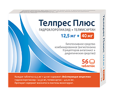Телпрес Плюс 40 мг/12,5 мг можно назначать 1 р/сут пациентам, у которых АД недостаточно контролируется при применении таблеток Телпрес 40 мг .