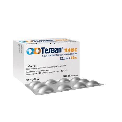 Телзап Плюс таблетки 80мг + 12,5мг 30 шт . Санофи Илач Санайи ве Тиджарет А .Ш . . .