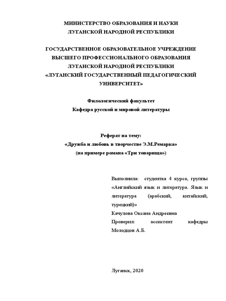 Реферат: Рекомендации по выполнению зачетной работы Зачетная работа имеет следующую примерную структуру
