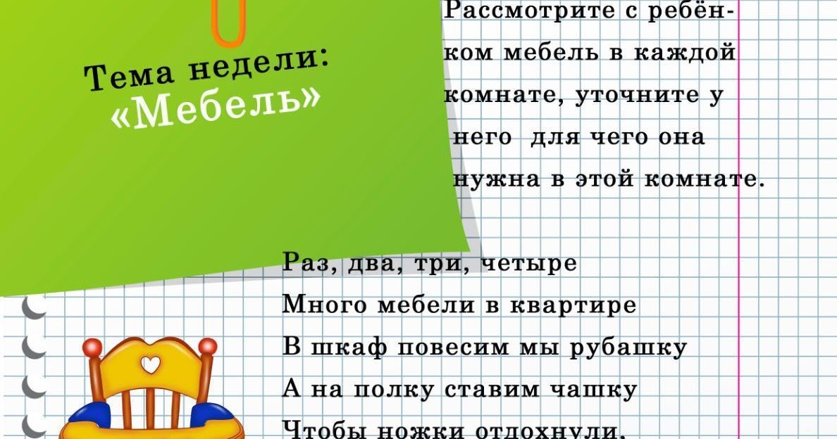 Лексическая тема недели: «МЕБЕЛЬ (части мебели) . Кто нам . . .